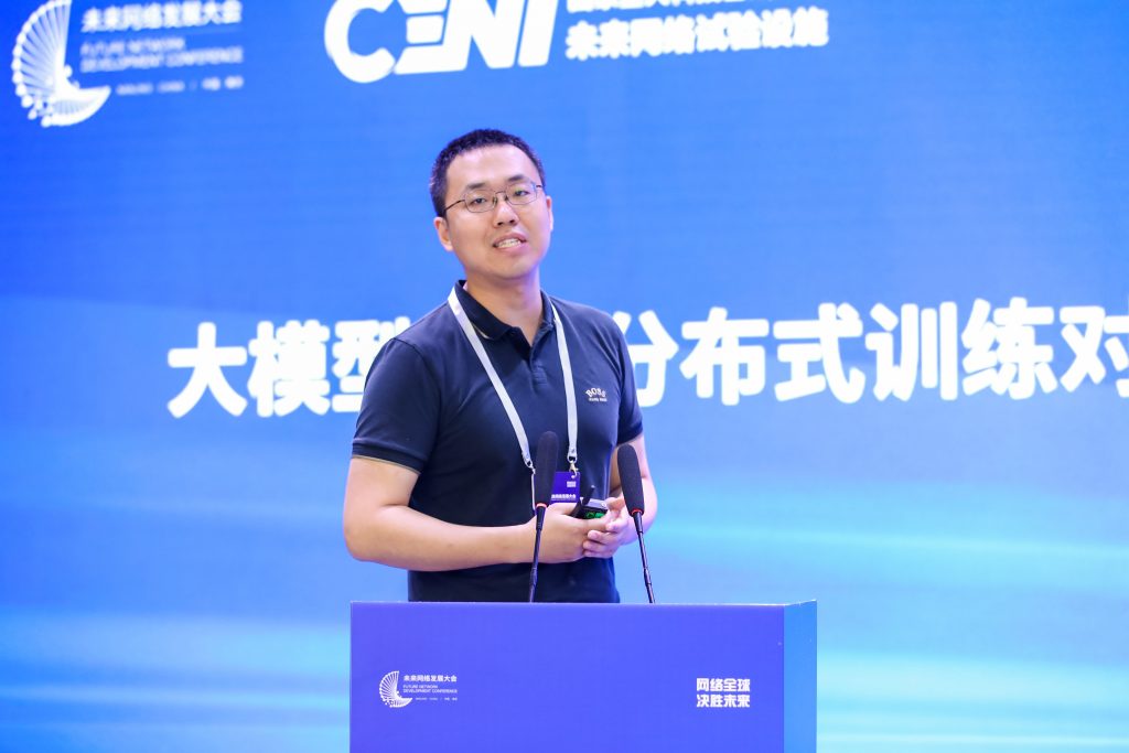 华为数通布尔实验室技术专家管紫轩在《大模型跨域分布式训练对网络的需求》主题演讲中,详细分析了大模型拉远训练的背景和挑战点,并提出了针对拉远训练集合通信算法优化、多DC全局负载均衡技术、精准流控技术解决拉远丢包问题等多个针对性的创新技术解题思路,最后结合具体的真实试验场景为大家解读了当前基于GPT3-175B模型千卡拉远测试结果。